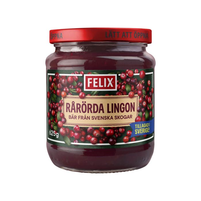 rohgerührte Preiselbeeren; nicht so süß wie Marmelade, sondern insbesondere für warme Fleischgerichte und Köttbullar gedacht